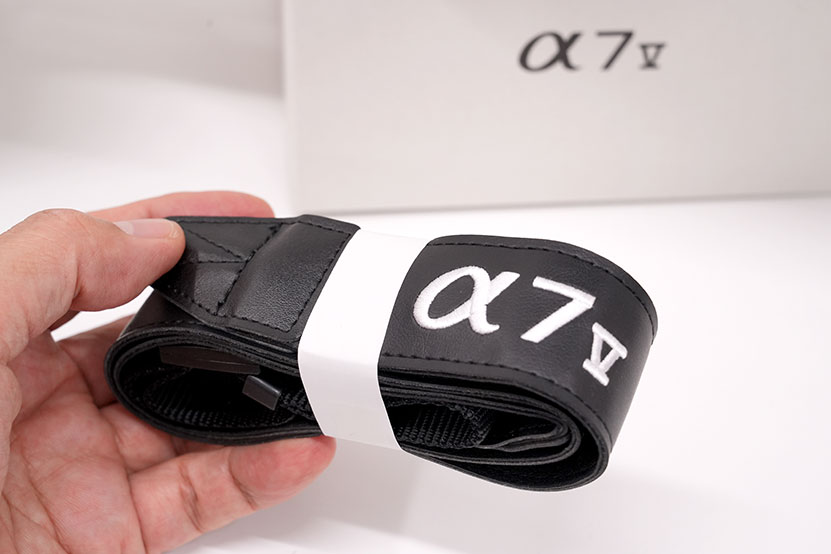 従来モデル α7 VI と同じような仕様で、V の文字が刺繍されています。(※書き間違いがあり訂正しました。)