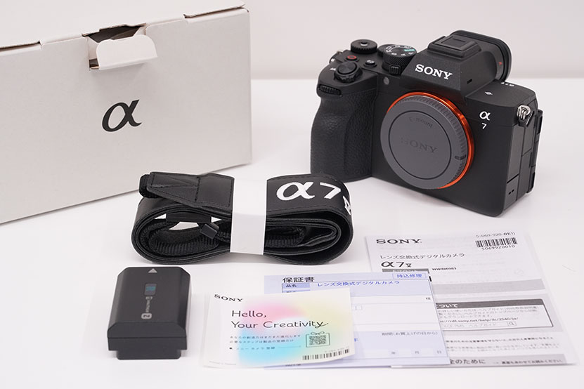 これから長い期間、連れ回すわけですから、いわゆる新品というのはこのときだけ。このキレイさを目に焼き付けておきたいところです。それにしてもデザインは相変わらず αなデザインです。 特に従来モデル α7 IV との違いなんて、所有者以外、見分けがつかないレベルでは?