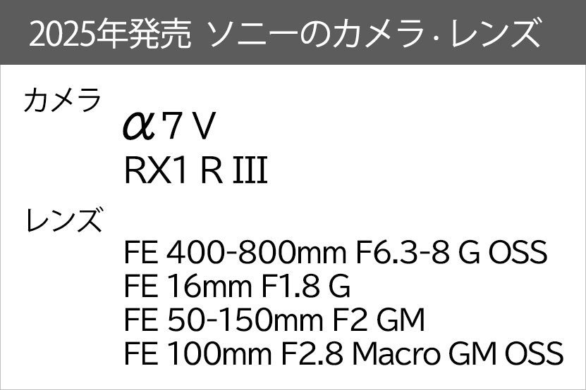 2025年に発売されたソニーのカメラ・レンズは全部で「6」。